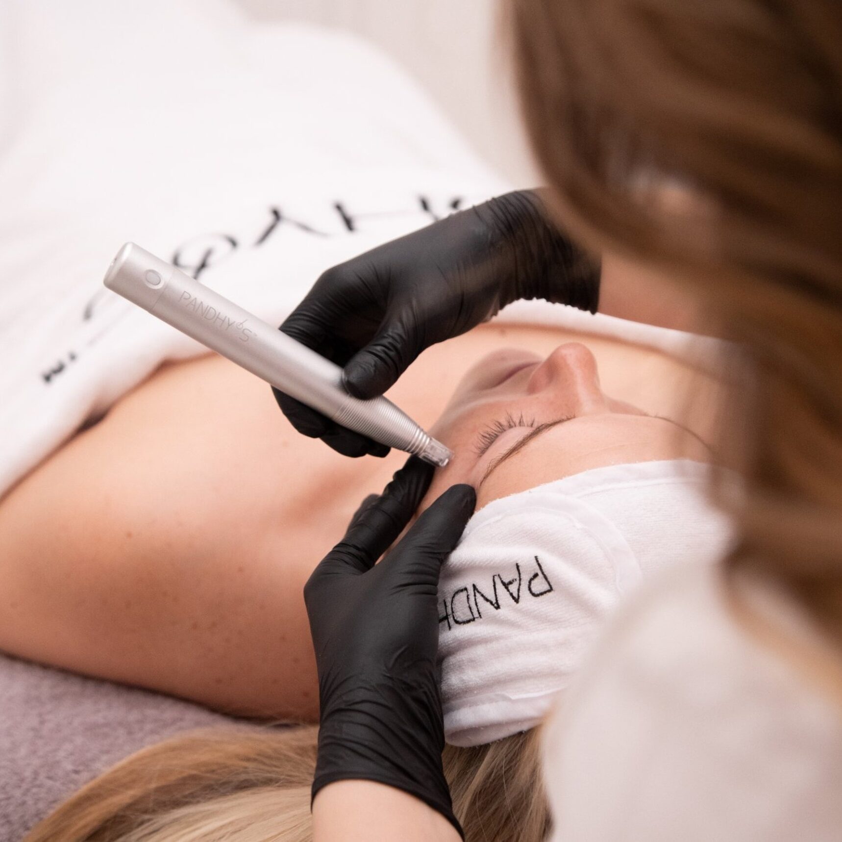 Durch minimalinvasive Reize dringen die Nadeln bis zu 0,5 mm tief in die Haut ein und aktivieren die natürliche Regeneration. Gleichzeitig schleusen wir hochwertige Wirkstoffe wie Seidenkollagen oder multimolekulares Hyaluron gezielt in die Haut ein. Wir arbeiten mit dem PANDHY‘S™ Derma Pin Pen System, das über 30 Nadeln in einer Chipplatte vereint, für ein besonders präzises, gleichmäßiges und effektives Verfahren.