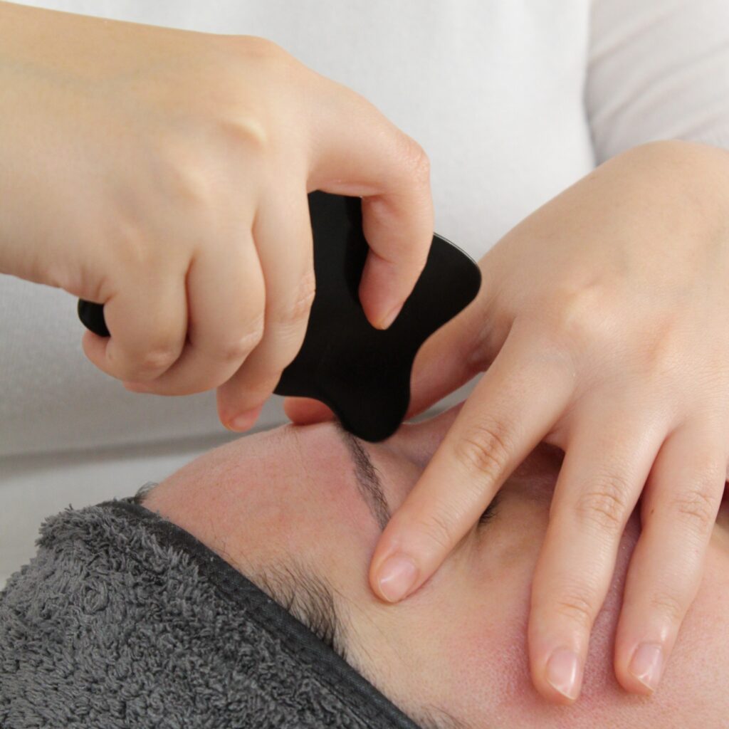 • Cupping mit Vakuum-Cups Aktiviert den Lymphfluss, regt die Durchblutung an, wärmt die Muskulatur und lässt die Gesichtszüge klarer und definierter erscheinen.